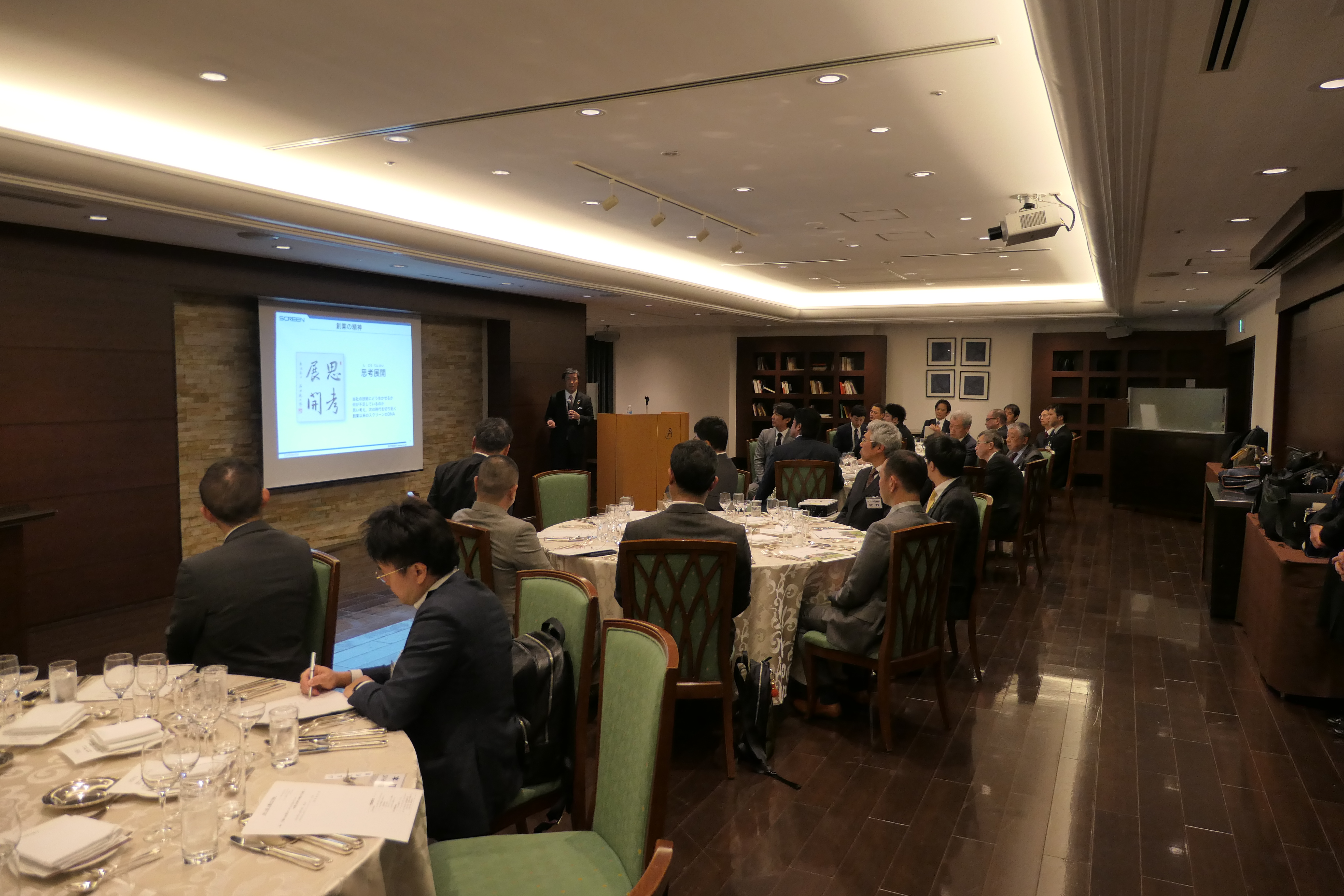 講演会終了後は、同会場にて懇親会を開催し、垣内副会長の他、同社のSci室の西村室長並びに秘書室広報チームの山本マネージャーにも同席いただき和やかな懇談が行われた。